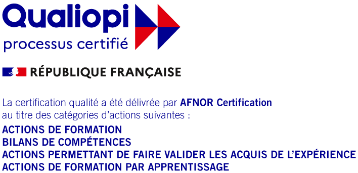 Dans le cadre de ses actions de formation continue et en alternance notre organisme de formation est certifié :